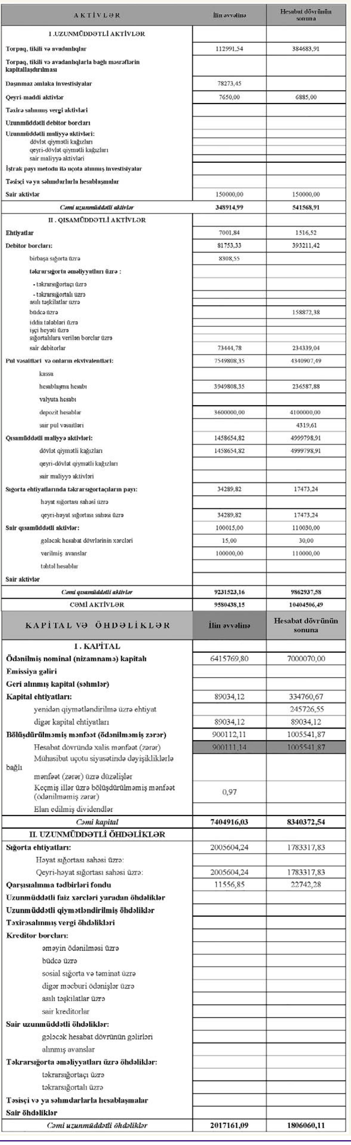 "Naxçıvan Sığorta" ötən ili 1 milyon manatdan çox xalis mənfəət ilə başa vurub