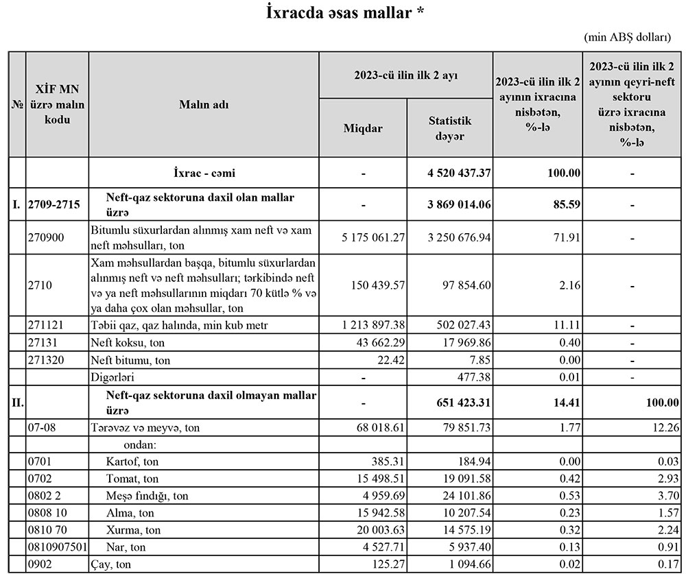 Azərbaycanın ən çox ixrac və idxal etdiyi mallar - YENİ SİYAHI