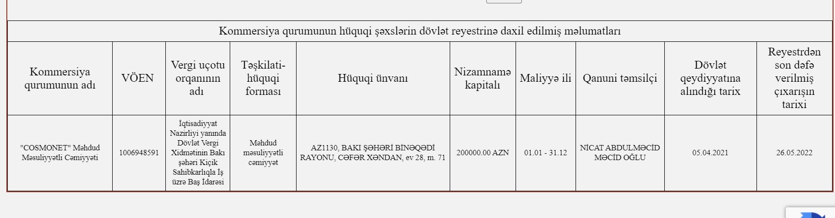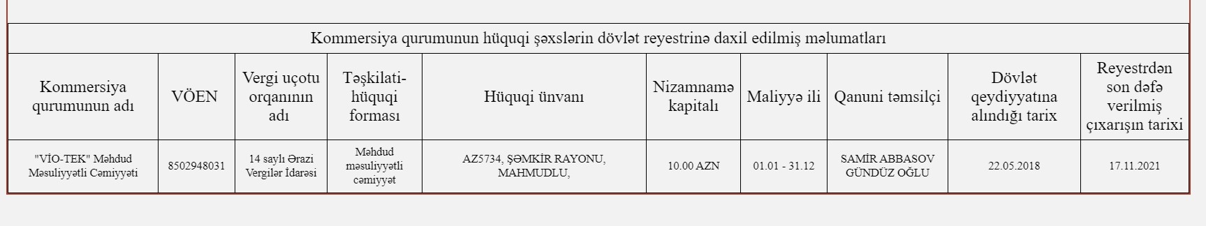 "Cosmonet" 2021-ci ildə yaradılıb və nizamnamə kapitalı 200 min manatdır. 10 manat nizamnamə kapitalı olan "Vio-Tek" 2018-ci ildə, 10 manat nizamnamə kapitalı olan "İdeal Telekom" isə 2021-ci ildə dövlət qeydiyyatına alınıb."Vio-Tek" MMC-nin hüquqi ünvanı Şəmkirdə, digər şirkətlərin hüquqi ünvanı isə Bakı şəhərindədir.