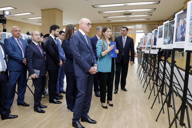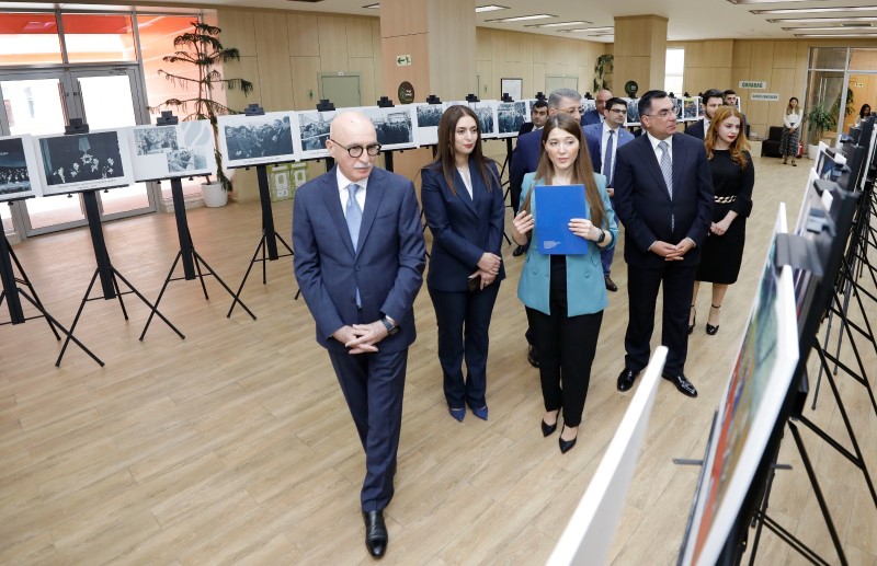 Əvvəlcə tədbir iştirakçıları Ulu Öndər Heydər Əliyevin 100 illik yubileyinə həsr olunmuş sərgi ilə tanış olublar.