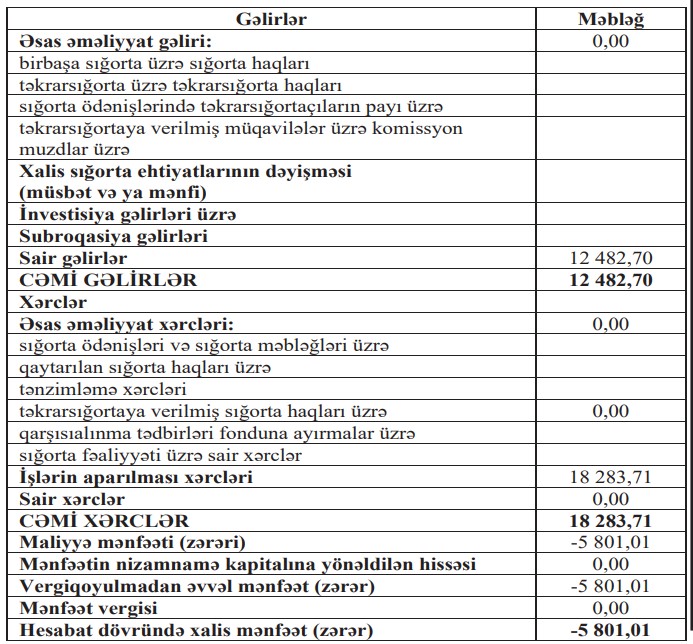 Marja xəbər verir ki, ötən il şirkətin cəmi əməliyyat gəlirləri 12 min 483 manat, cəmi əməliyyat xərcləri 18 284 manat təşkil edib.