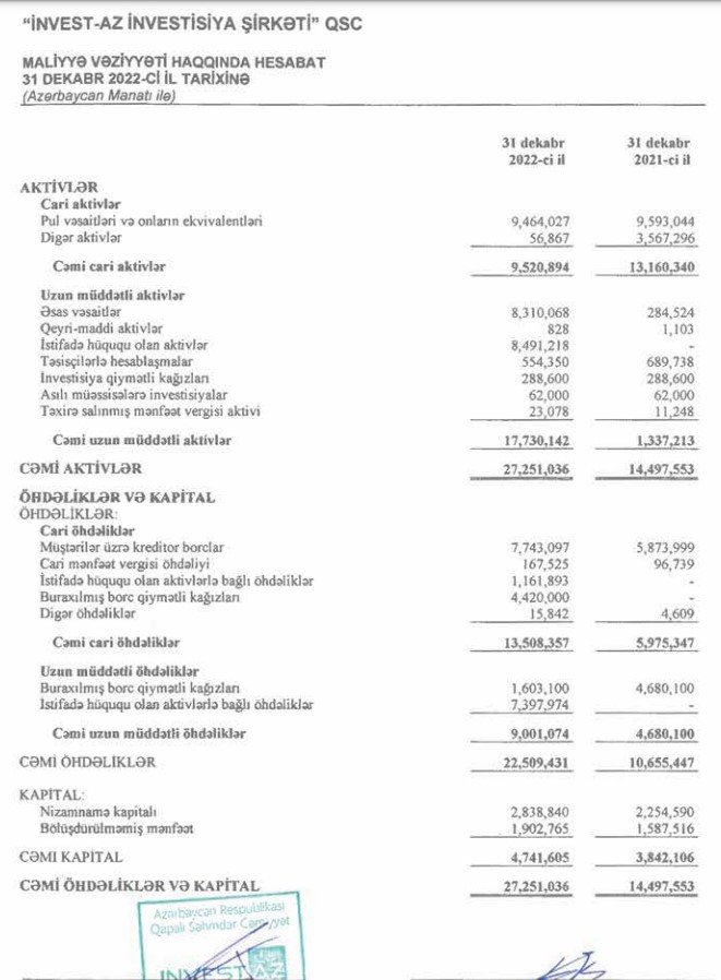 "İnvest-AZ" maliyyə vəziyyətini açıqladı