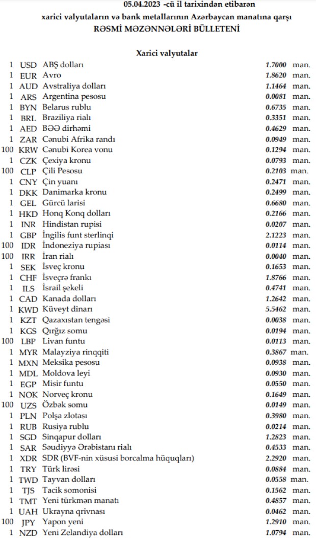 Dolların bazar ertəsi üçün rəsmi məzənnəsi müəyyən olunub