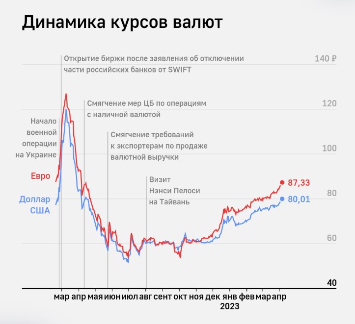 Moskva birjasının məlumatına görə, Bakı vaxtı ilə saat 10:21-də, dollar 0,26 rubl və ya 0,33% artaraq 80,1 rubl olub. Dollar sonuncu dəfə təxminən bir il əvvəl, 18 aprel 2022-ci ildə 80-dən yuxarı ticarət edilmişdi.