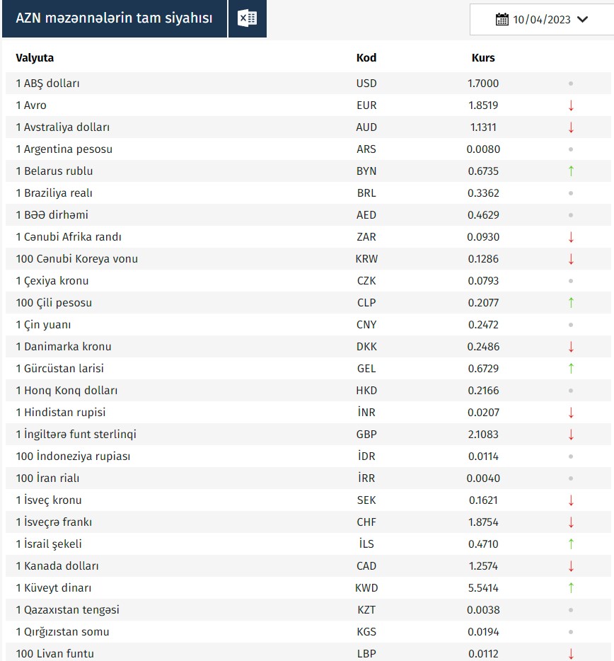 Dolların bazar ertəsi üçün rəsmi məzənnəsi müəyyən olunub