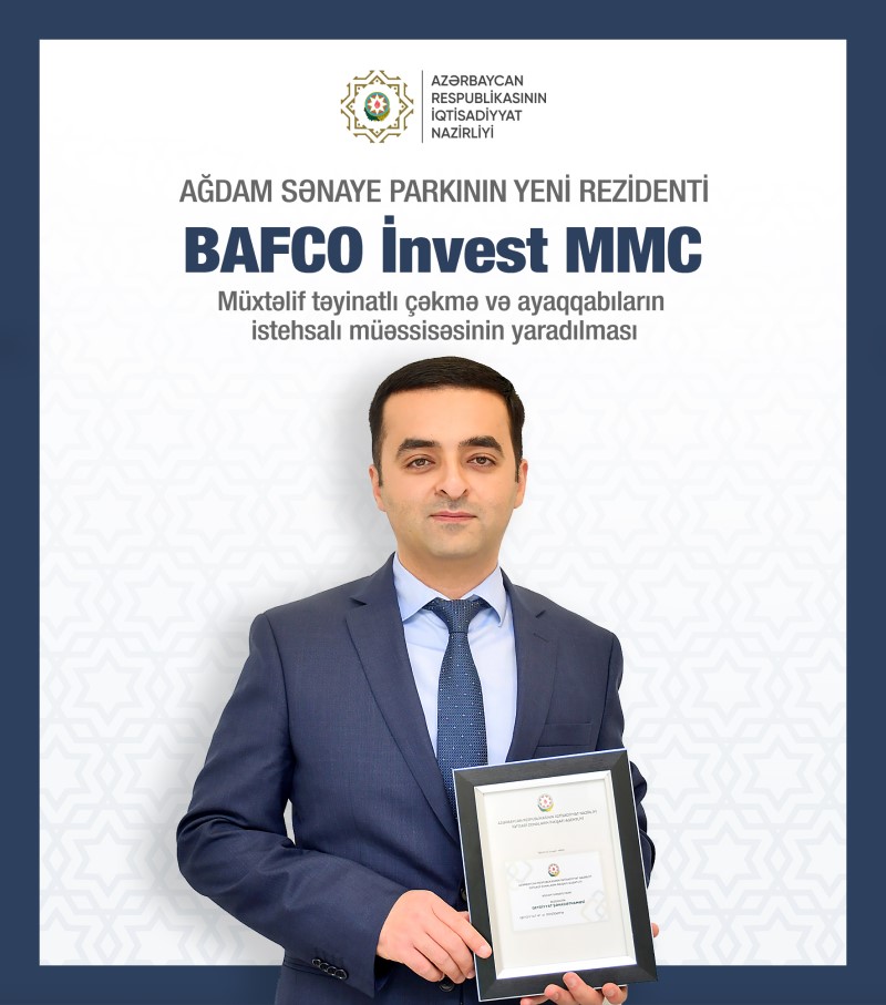 O qeyd edib ki, sənaye parkında yeni rezident "BAFCO İnvest" MMC tərəfindən investisiya həcmi 10 milyon manat olan müxtəlif təyinatlı çəkmə və ayaqqabıların istehsalı müəssisəsi yaradılacaq və 120 nəfər işlə təmin ediləcək.