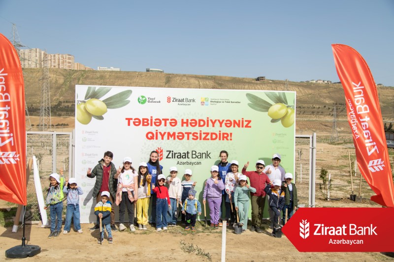 (®) Fəaliyyətində daim sosial yönümlü layihələrə xüsusi önəm verən Ziraat Bank Azərbaycan, Ekologiya və Təbii Sərvətlər Nazirliyinin “Yaşıl Gələcək” adlı genişmiqyaslı ağacəkmə layihəsinə qoşularaq müştərilərinin adına ağac əkib. Layihə çərçivəsində Bank tərəfindən Xocasən qəsəbəsində baharın gəlişi münasibətilə müştərilərinin adına 1000-ə yaxın zeytun ağacı əkilib və suvarma sistemi quraşdırılıb.