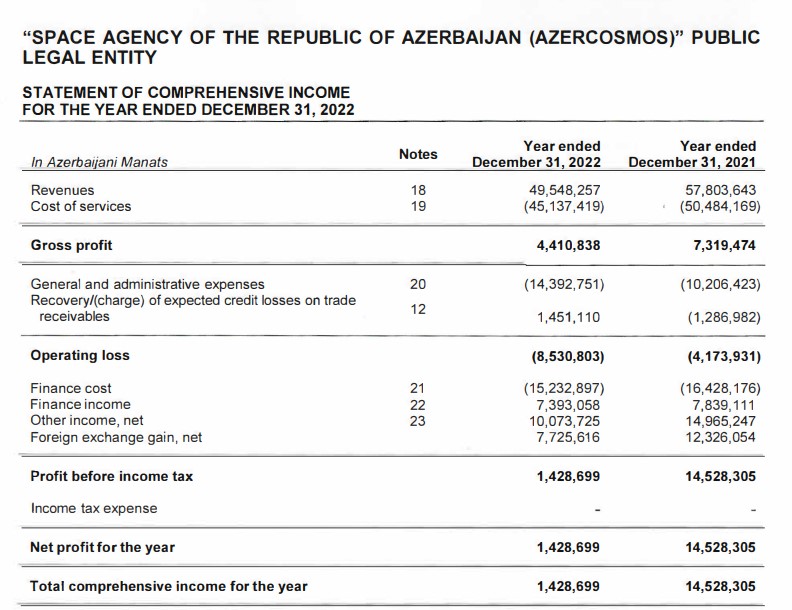 Azərkosmosun 2022-ci ilin yekunları üzrə maliyyə hesabatı ilə aşağıda tanış ola bilərsiniz.
