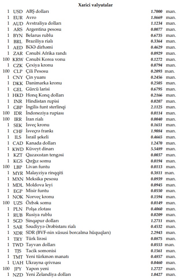 Rəsmi məzənnələr açıqlandı