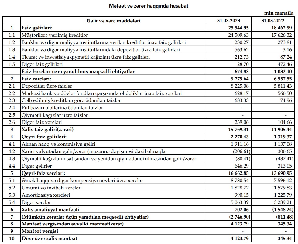 2023-cü ilin ilk rübündə "Yelo Bank"ın əməliyyat mənfəəti 1 milyon 377 min manat təşkil edib. 2022-ci ilin ilk rübündə Bankın 466 min manat əməliyyat zərəri yaranmışdı.