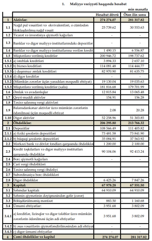 "Günay Bank"da depozitlər ötən ilin sonundakı 111 milyon 405 min manatdan 108 milyon 566 min manata düşüb.