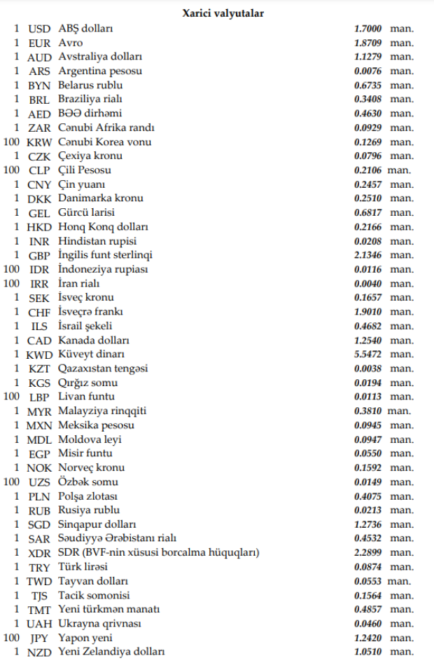 Dolların bazar ertəsi üçün rəsmi məzənnəsi müəyyən olunub
