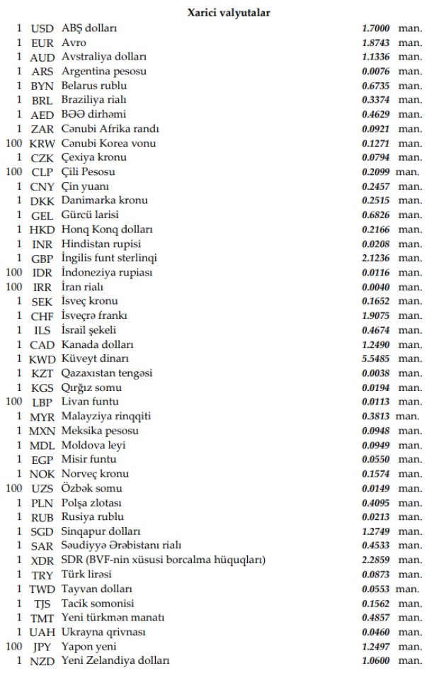Dolların bazar ertəsi üçün rəsmi məzənnəsi müəyyən olunub