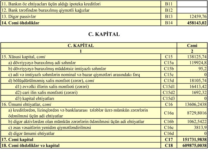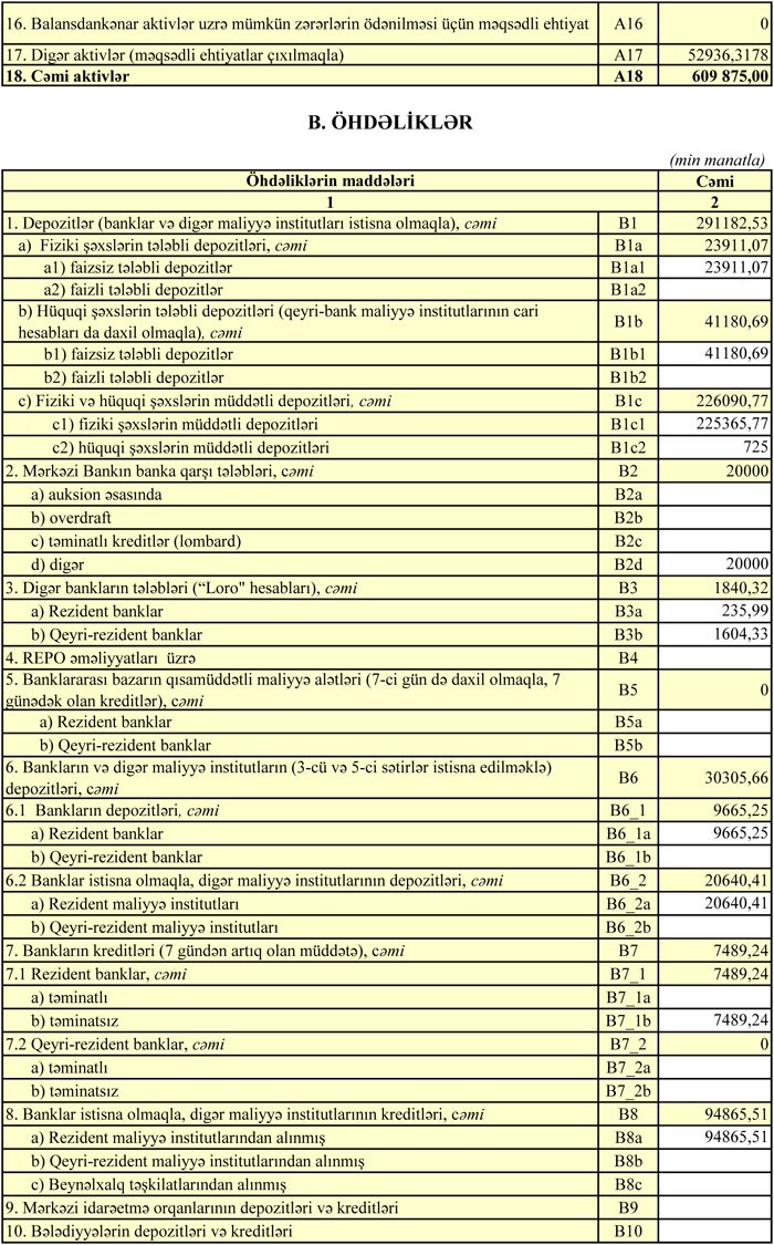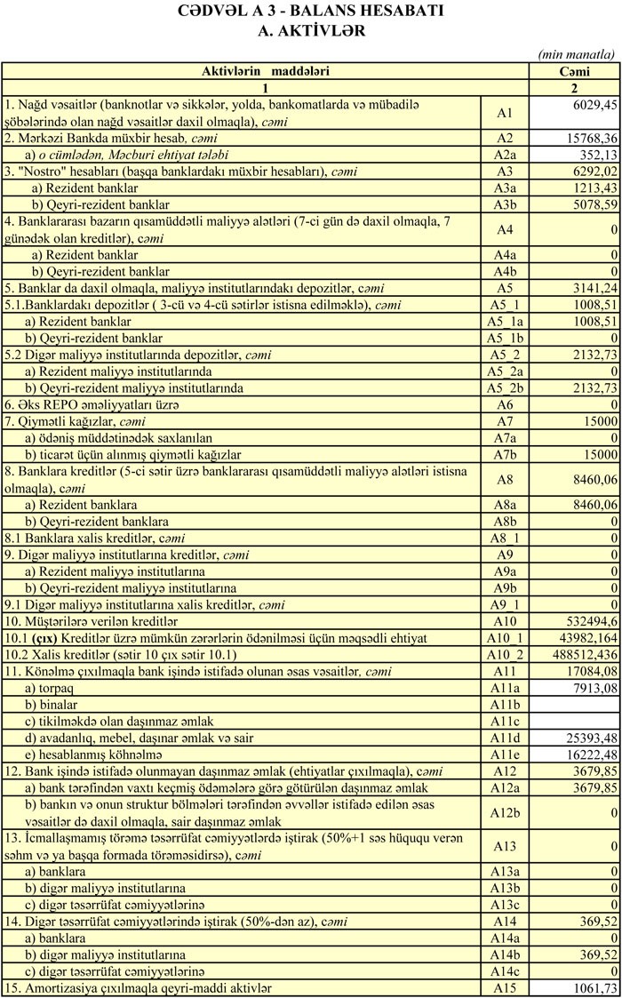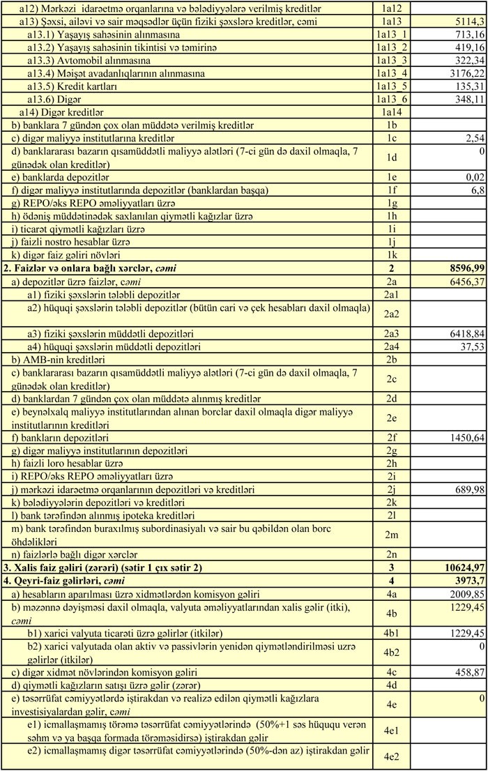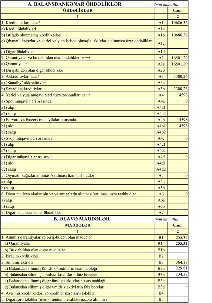 Birinci yarımildə müştərilərə verilən kreditlər 406 milyon 533 min manatdan 532 milyon 494 min manata, depozitlər isə 269 min 591 min manatdan 291 milyon 182 min manata artıb.