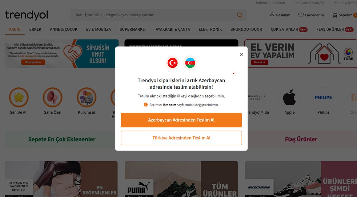 Vətəndaşlar Trendyol-dan mal alarkən çatdırılması üçün Azərbaycandakı ünvanını da göstərə biləcəklər
