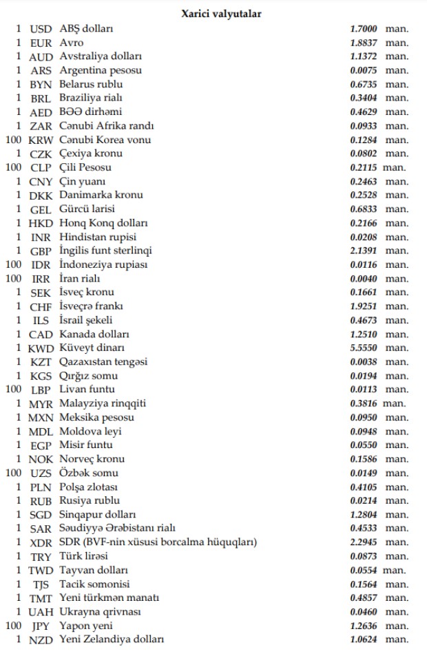 Dolların bazar ertəsi üçün rəsmi məzənnəsi müəyyən olunub