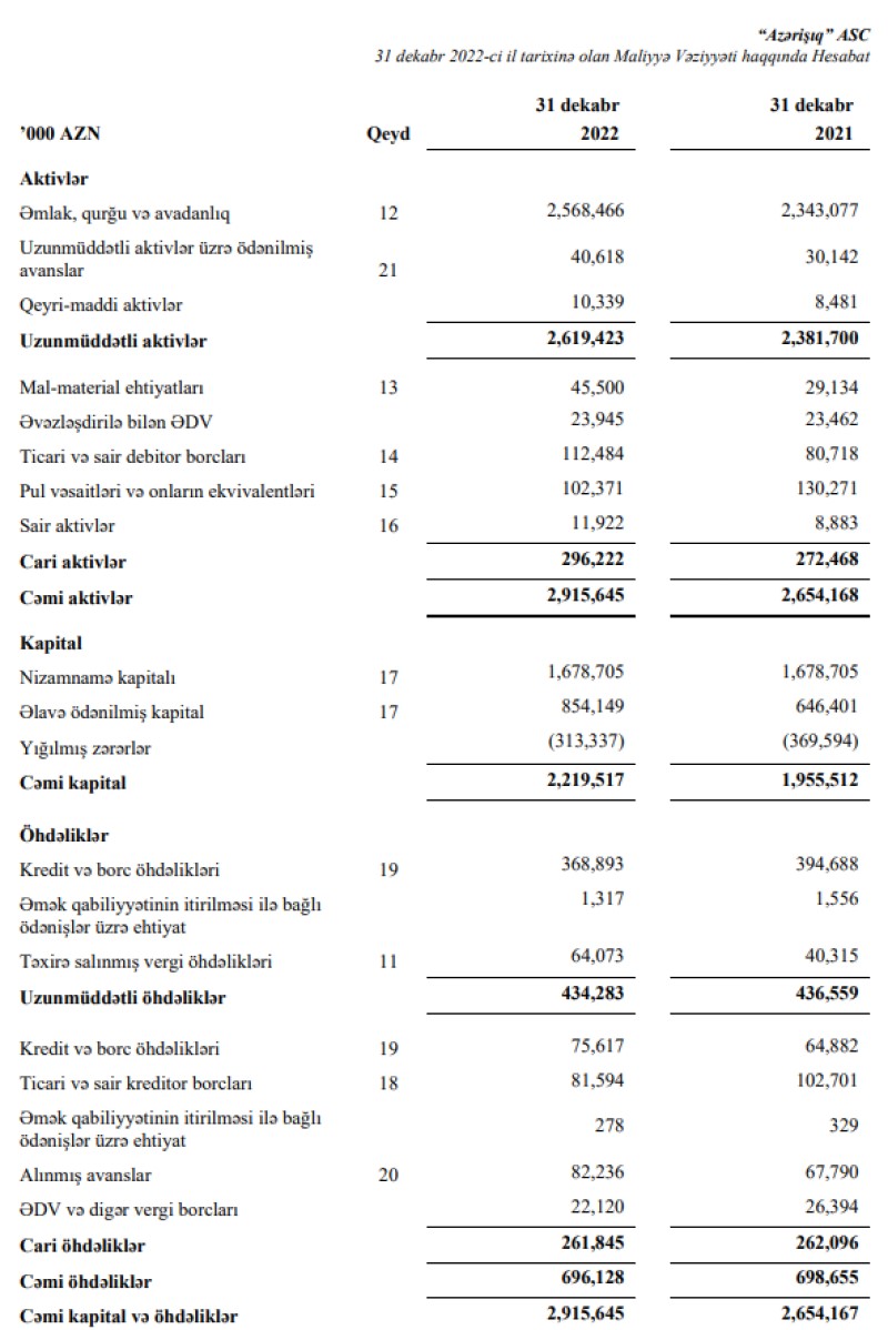 Beləliklə, "Azərişıq" ASC-nin xalis mənfəəti 2022-ci ildə 2021-ci illə müqayisədə 4,4 dəfə artıb. Xalis mənfəətin artması ilə əlaqədar olaraq şirkətin yığılmış zərəri 369 milyon 594 min manatdan 313 milyon 337 min manata düşüb.