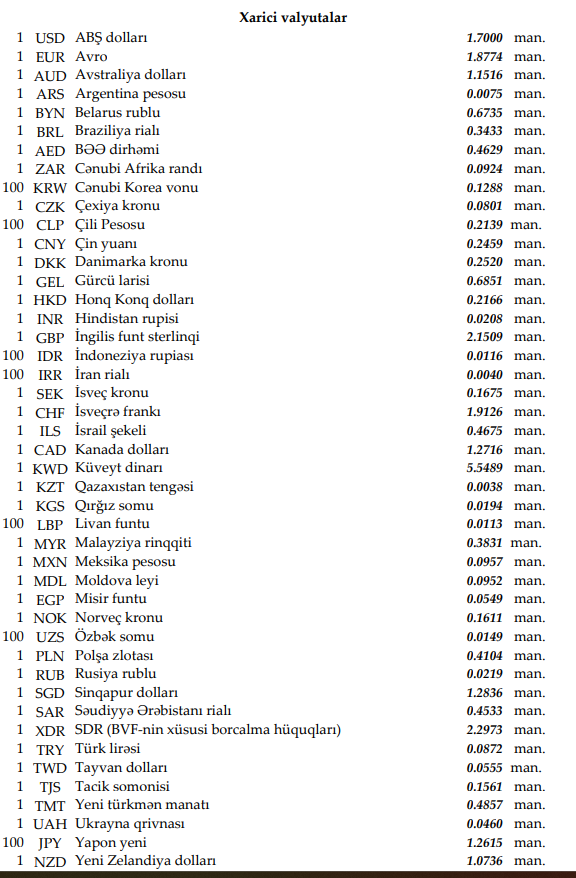 Azərbaycan Respublikasının Mərkəzi Bankının 08.05.2023 -cü il tarixindən etibarən xarici valyutaların və bank metallarının Azərbaycan manatına qarşı RƏSMİ MƏZƏNNƏLƏRİ BÜLLETENİ