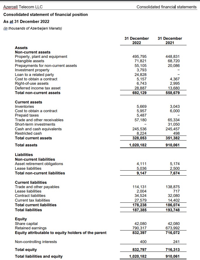 Müqayisə üçün qeyd edək ki, 2021-ci ildə Azercell-in cəmi əməliyyat gəlirləri 492 milyon 871 min manat, cəmi əməliyyat xərcləri 344 milyon 568 min manat, əməliyyat mənfəəti 148 milyon 303 min manat, ödədiyi mənfəət vergisi 27 milyon 128 min manat təşkil etmişdi.
