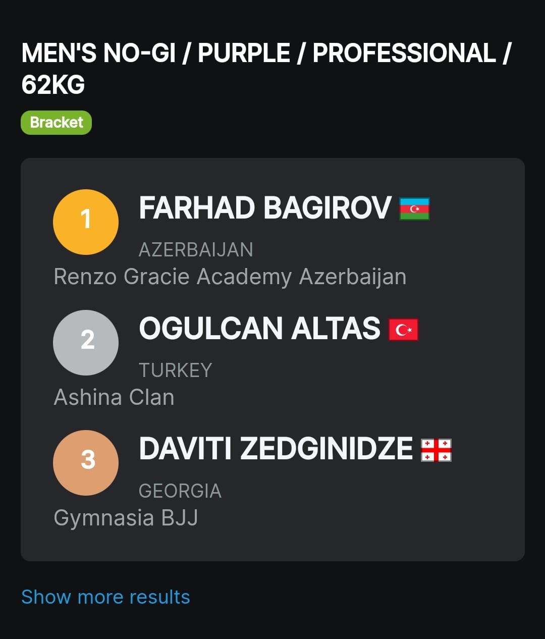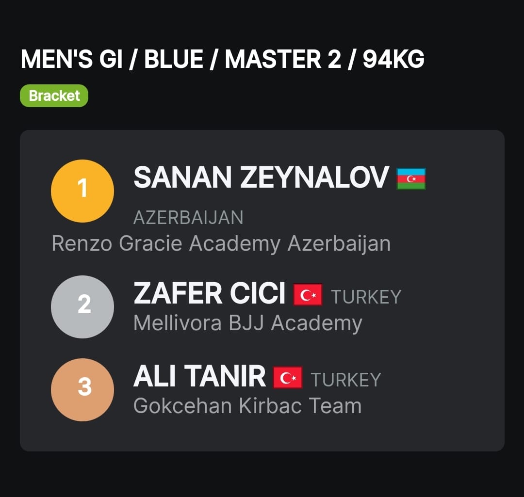 27 may 2023-cü il tarixində Türkiyə Cümhuriyyətinin İstanbul şəhərində AJP təşkilatının keçirdiyi beynəlxalq yarışmada “Renzo Gracie Academy Azerbaijan”-nı təmsil edən Zeynalov Sənan ki mo no versiyasında, akademiyanın qriplinq üzrə məşqçisi Fərhad Bağırov rəqiblərini üstələyərək 1-ci yeri qazanıblar.