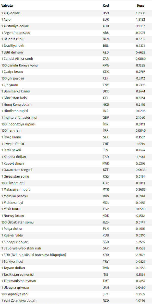 Dolların bazar ertəsi üçün rəsmi məzənnəsi müəyyən olunub