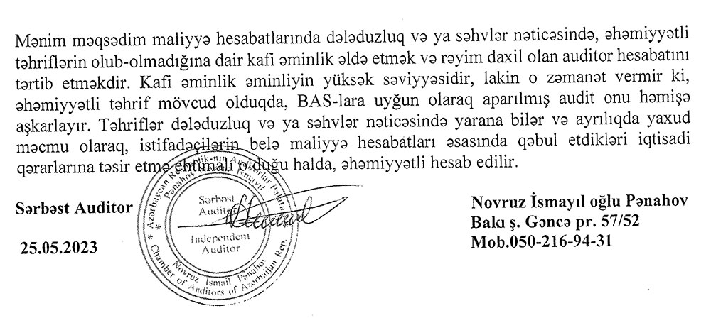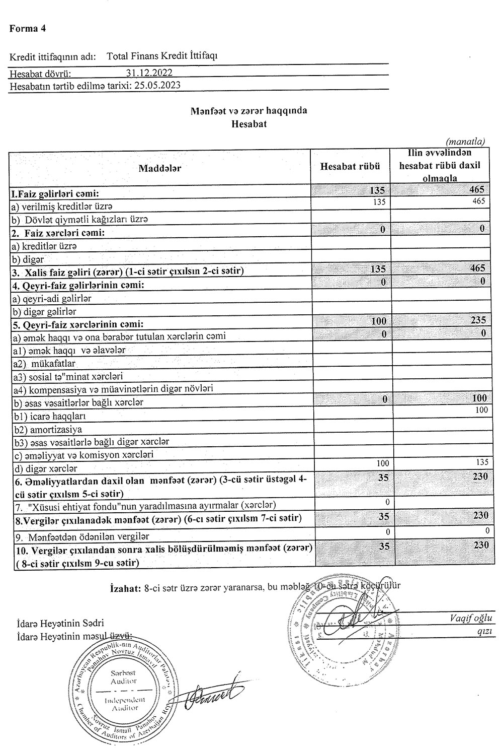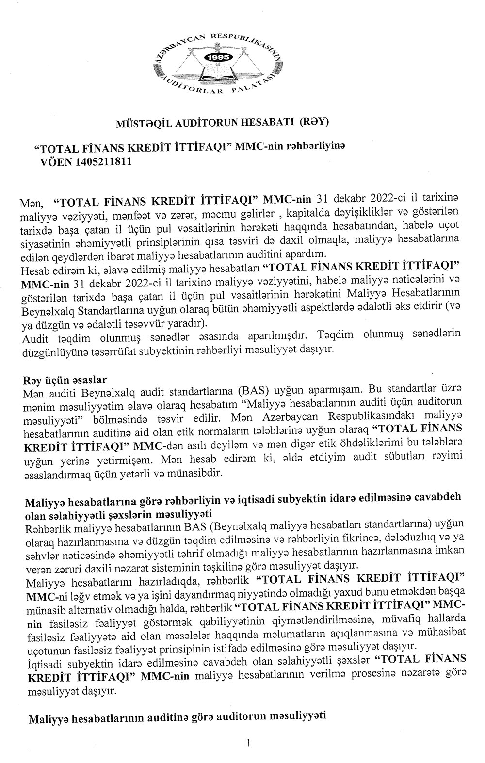 Total Finans Kredit İttifaqının 31 Dekabr 2022-ci tarixində bitən il üzrə maliyyə hesabatları
