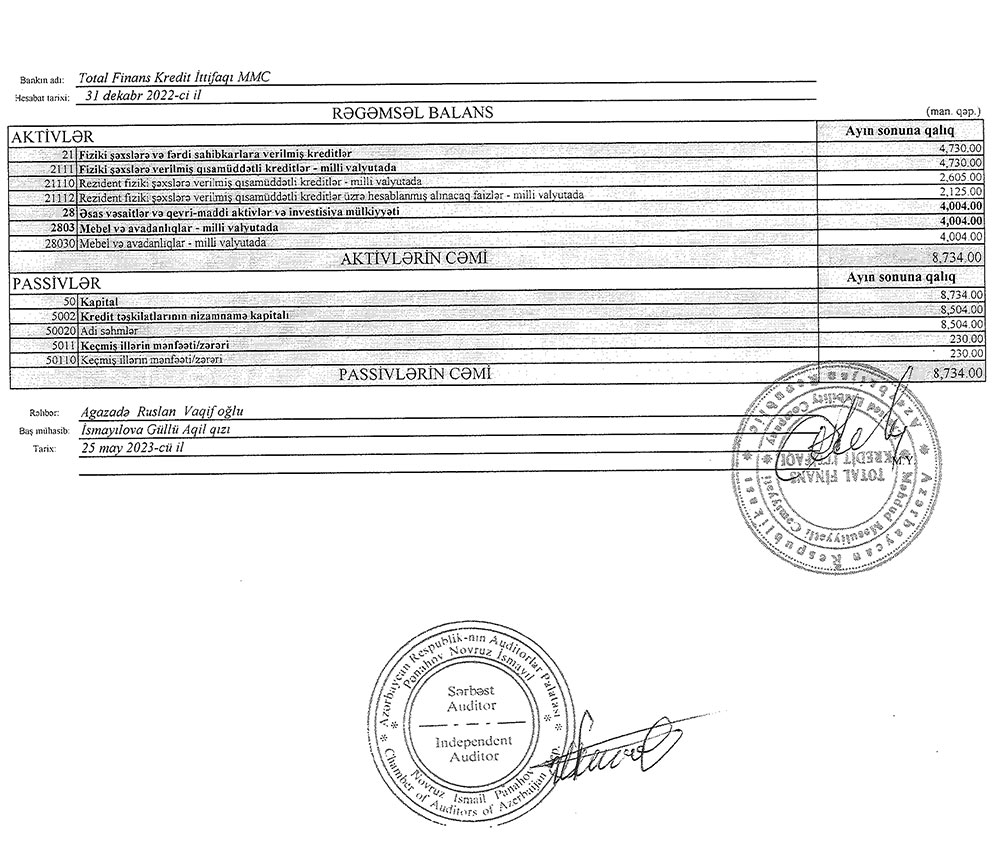 Total Finans Kredit İttifaqı 2022-ci il üzrə maliyyə göstəricilərini açıqladı