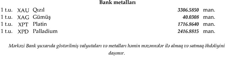 Rəsmi məzənnələr açıqlandı
