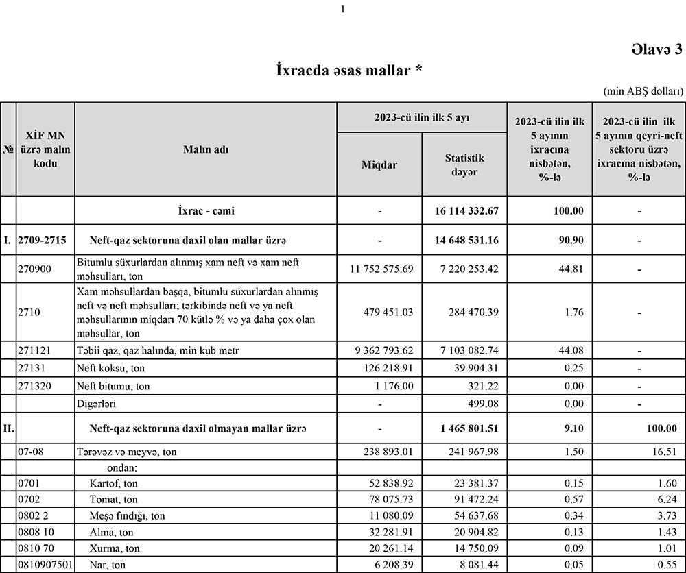 Azərbaycanın ən çox ixrac və idxal etdiyi mallar - YENİ SİYAHI