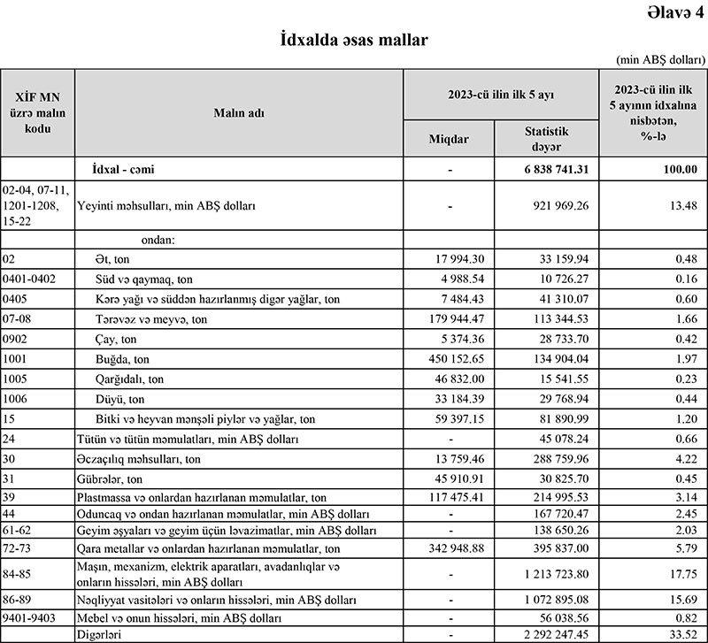 2023-cü ilin yanvar-may aylarında Azərbaycanın ən çox ixrac və idxal etdiyi mallar.