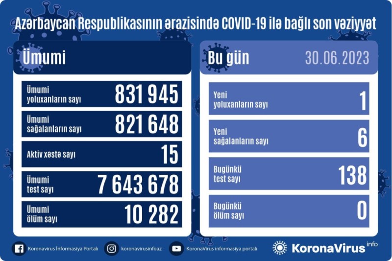 Məlumata görə, COVID-19 üçün götürülən analiz nümunələri müsbət çıxmış şəxslər arasında ölən olmayıb.