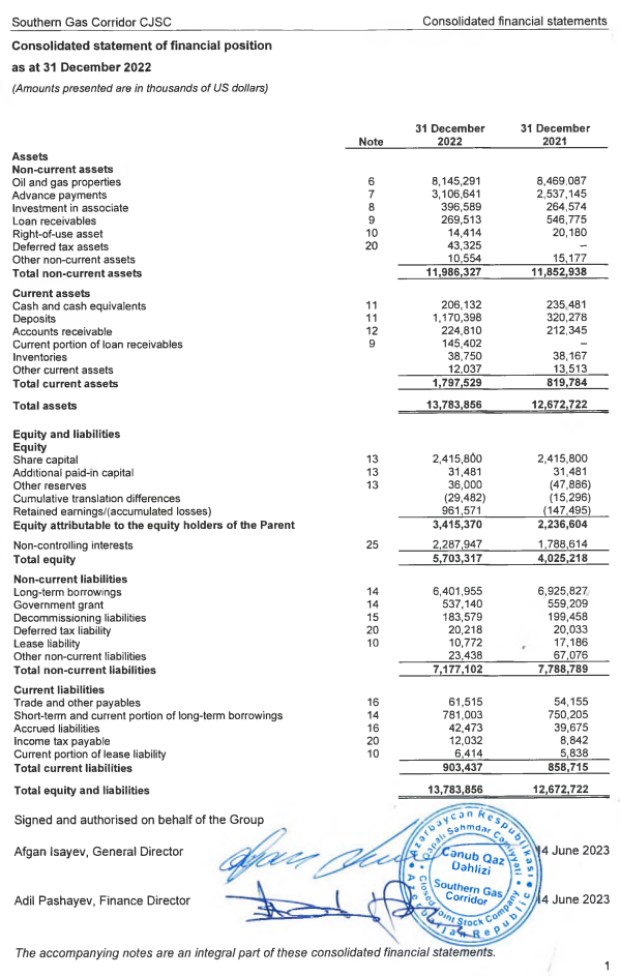 "Cənub Qaz Dəhlizi" QSC 2022-ci ili 1 milyard 608 milyon 399 min dollar xalis mənfəət ilə başa vurub. QSC 2021-ci ili 795 milyon 397 min dollar xalis mənfəət ilə bağlamışdı.