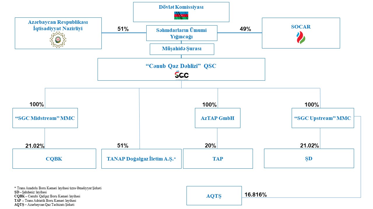 Azərbaycan Respublikasının Prezidenti 25 fevral 2014-cü il tarixində Layihələr üzrə Dövlətə məxsus payların konsolidasiya edilməsi, idarə olunması və maliyyələşdirilməsi məqsədilə “Cənub Qaz Dəhlizi” Qapalı Səhmdar Cəmiyyətinin (“CQD”) yaradılması haqqında sərəncam imzalamışdır. CQD Dövlət (Azərbaycan Respublikasının İqtisadiyyat Nazirliyi) (51%) və SOCAR-ın (49%) təsisçiliyi ilə 31 mart 2014-cü il tarixində yaradılmışdır.