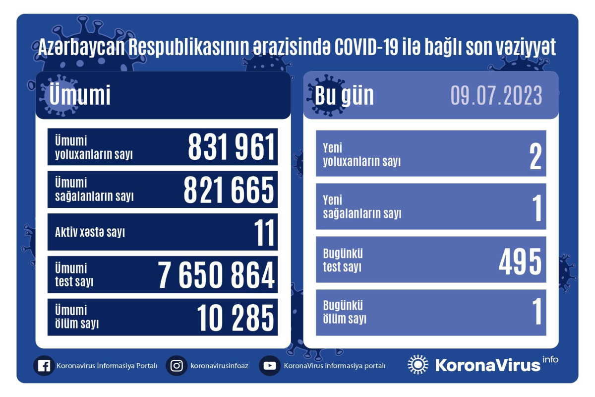 Azərbaycan Respublikasında koronavirus (COVID-19) infeksiyasına 2 yeni yoluxma faktı qeydə alınıb, 1 nəfər müalicə olunaraq sağalıb.
