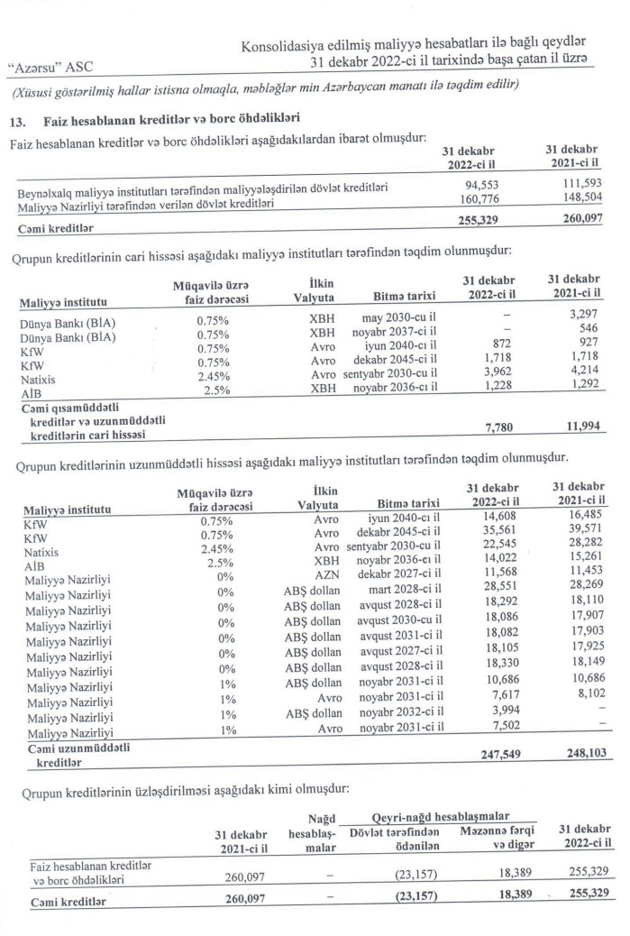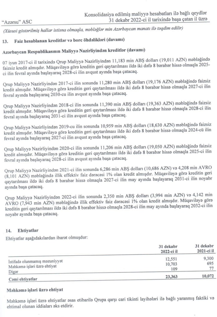 Ötən ilin sonunda "Azərsu" ASC-nin KfW, Natixis, AIB və Maliyyə Nazirliyinə borcu olub.