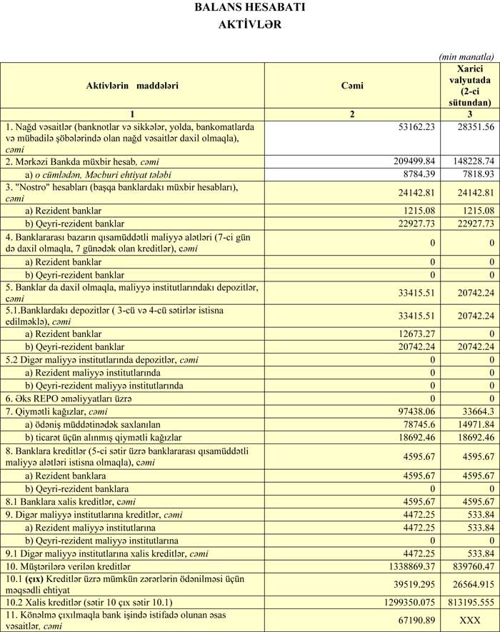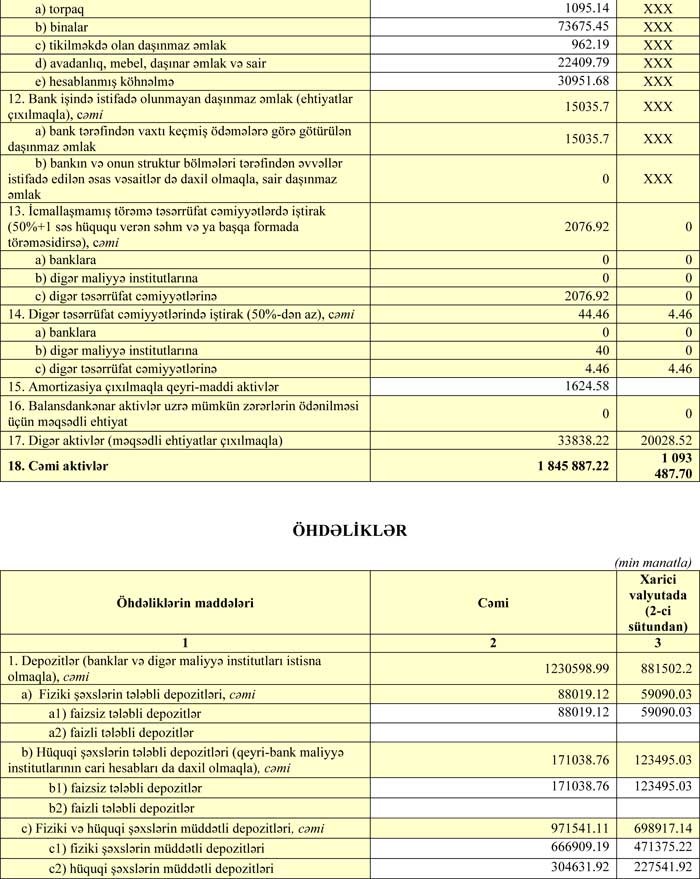 Müqayisə olunan dövrdə Bankın müştərilərə verdiyi kreditlər 1 milyard 274 milyon 525 min manatdan 1 milyard 338 milyon 869 min manata, depozitlər isə 1 milyard 98 milyon 899 min manatdan 1 milyard 230 milyon 598 min manata qalxıb.