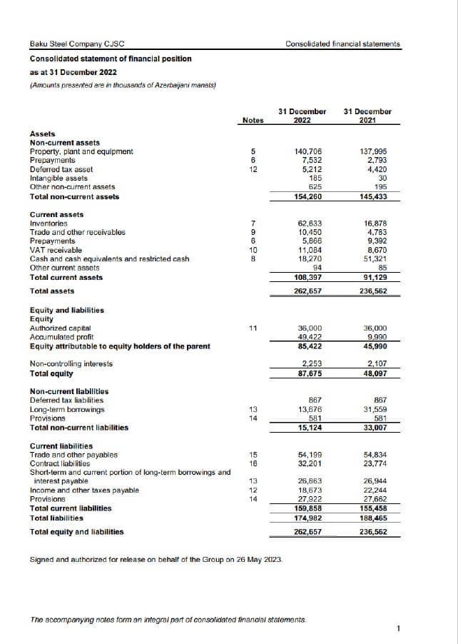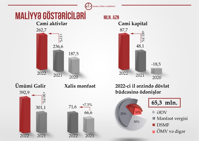 “Baku Steel Company" 2022-ci il üzrə göstəricilərini açıqladı - 72 MİLYON MANATA YAXIN XALİS MƏNFƏƏT