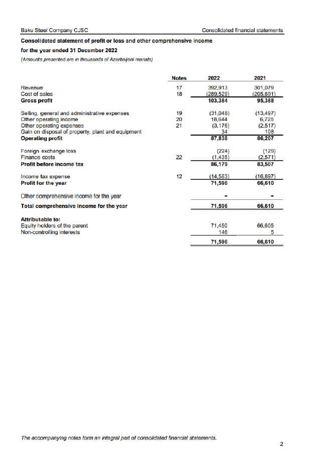2022-ci ildə “Baku Steel Company"nin satışdan gəlirləri 30,5% artaraq 392,9 milyon manat, xalis mənfəəti 7,5% aratarq 71,6 milyon manata bərabər olub.Qafqaz regionunun ən böyük metallurgiya şirkəti olan “Baku Steel Company” QSC (bundan sonra “BSC” və ya “Qrup”) 2022-ci il üzrə maliyyə və digər əsas fəaliyyət göstəricilərini* açıqlayıb.