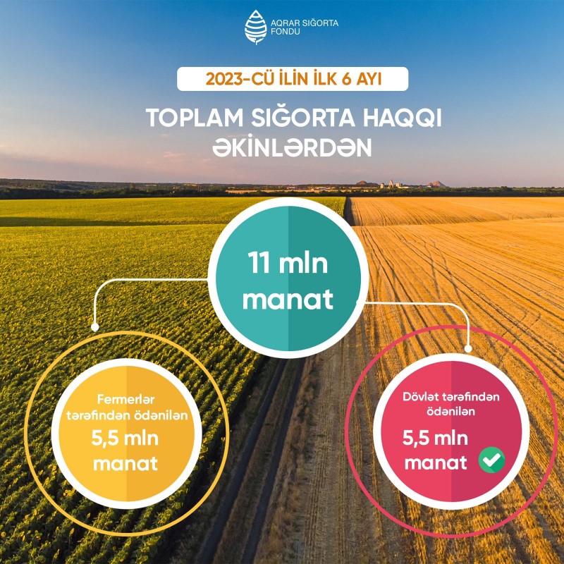 Qanunvericiliyə əsasən, fermerlərə dövlət dəstəyi məqsədilə sığorta haqlarının 50%-i dövlət tərəfindən ödənilir. Buna uyğun olaraq əkin sahələri üzrə sığorta haqlarının 5,5 milyon manatı fermerlər tərəfindən, digər 5,5 milyon manatı isə fermerlərə dəstək üçün dövlət tərəfindən ödənilib.