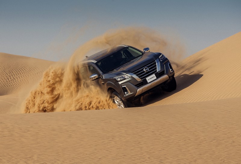 Ənənəvi yolsuzluq (OFF-Roader) avtomobilləri kimi Nissan X-Terra modeli rama üzərində yığılmış və əfsanəvi Nissan Patrol modelinin üslubunda radiator barmaqlıqlarına, əlavə müdafiəsi olan iri ön bamperlərə və C-şəkilli gündüz hərəkət işıqları olan yeni PİANO tipli LED fənərlərə sahibdir.