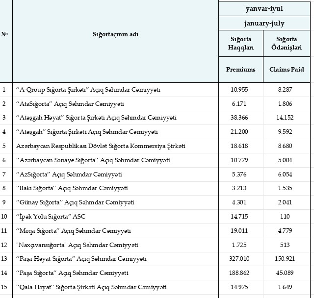 Müqayisə üçün qeyd edək ki, 2022-ci ilin yanvar-iyul dövründə Azərbaycanın sığorta şirkətləri tərəfindən 580 milyon 501 min manat sığorta haqları hesablanmış, 241 milyon 128 min manat sığorta ödənişləri həyata keçirilmişdi.
