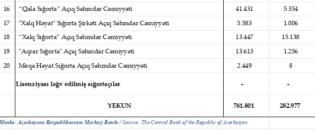 2023-cü ilin yanvar-iyul dövründə (7 ay) Azərbaycanın sığorta şirkətləri tərəfindən 761 milyon 801 min manat sığorta haqları hesablanıb, 282 milyon 977 min manat sığorta ödənişləri həyata keçirilib.