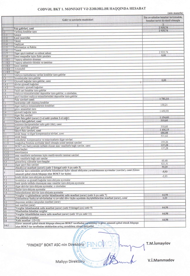 Bölüşdürülməmiş mənfəətin istifadəsilə əlaqədar olaraq BOKT "FİNOKO" ASC-nin cəmi kapitalı ötən ilin İyun ayının sonundakı 7 milyon 911 min manatdan 5 milyon 113 min manata geriləyib.