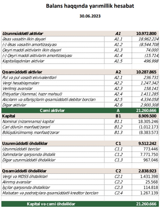 "Zəyəm Texnologiyalar Parkı" ASC 31 dekabr 2022-ci il tarixində 23 milyon 97 min manat, 30 iyun 2023-cü il tarixində isə 21 milyon 261 min manat cəmi aktivlərə malik olub.