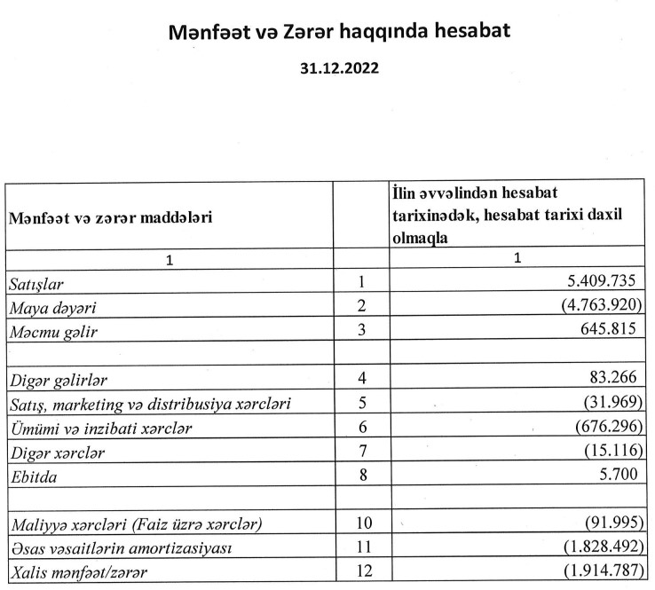 Marja.az xəbər verir ki, 2022-ci ildə "Zəyəm Texnologiyalar Parkı" ASC-nin cəmi gəlirləri (satış) 5 milyon 410 min manat, 2023-cü ilin 6 ayı ərzində isə 4 milyon 367 min manat təşkil edib.