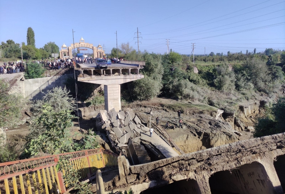 "İntensiv yağıntılar nəticəsində yaranmış güclü sel suları respublika əhəmiyyətli Gəndob-Xaçmaz-Yalama-Rusiya Federasiyası ilə dövlət sərhədi avtomobil yolunun 27-ci km-də, Qüdyalçay üzərində yerləşən və 1974-cü ildə inşa edilmiş avtomobil körpüsündə çökməyə səbəb olub".