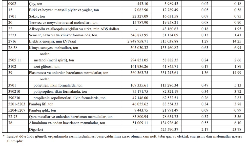 Azərbaycanın ən çox ixrac və idxal etdiyi mallar - YENİ SİYAHI