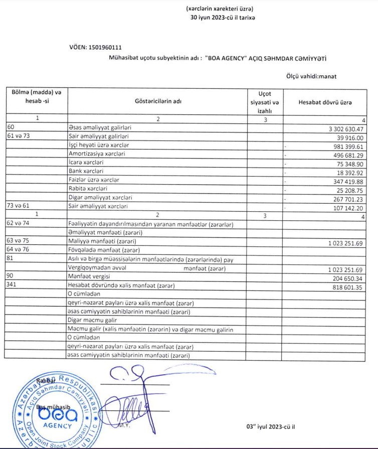 "BOA Agency" yarımillik gəlir və xalis mənfəətini açıqladı