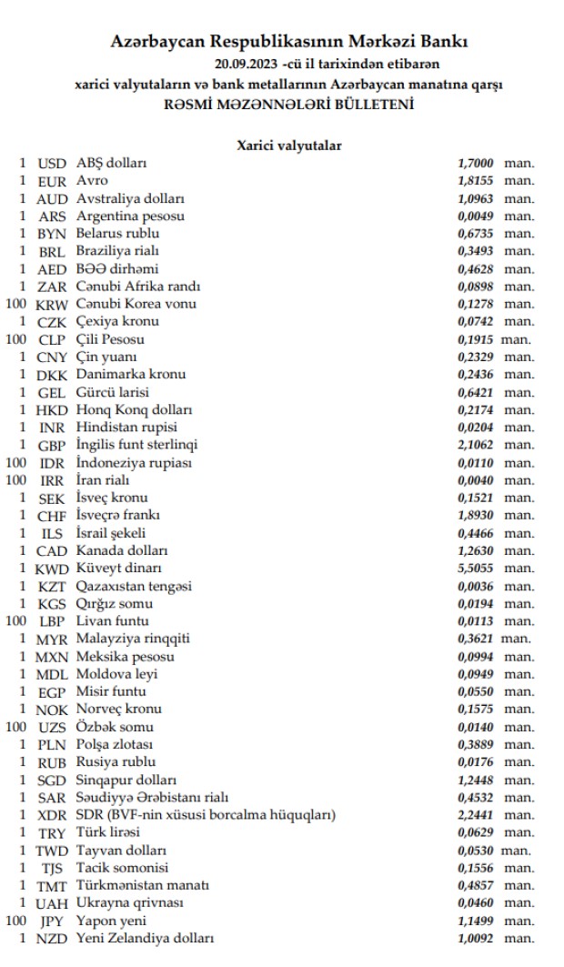 Rəsmi məzənnələr açıqlandı