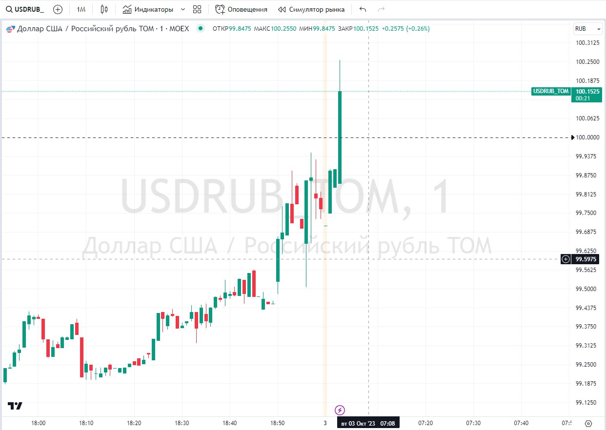 Bakı vaxtı ilə saat 08:02-yə olan məlumata görə, dollar 0,49% bahalaşaraq 100,23 rubl təşkil edib. Eyni zamanda, avro 104,65 rubldan, yuan 13,639 rubldan ticarət olunub.
